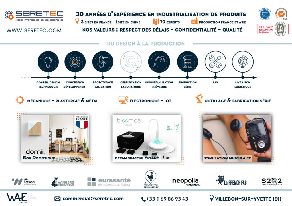 SERETEC, partenaire de La French Tech Paris-Saclay, est un bureau d’études qui proposent des services de maître d’œuvre industriel pour start-up et PME : expertises en conception, prototypage, industrialisation et fabrication série de produits mécatronique