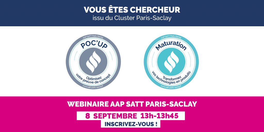 Créée en 2014 et issue du Programme « Investissements d’Avenir », la SATT Paris-Saclay est la Société d’Accélération de Transfert Technologique du Cluster Paris-Saclay. Acteur commun aux deux ensembles (Université Paris-Saclay et Institut Polytechnique de Paris) la SATT dispose d’une capacité d’investissements de 66 millions d’euros sur 10 ans pour financer et accompagner la valorisation des travaux de recherche issus du territoire et le transfert technologique vers les marchés.