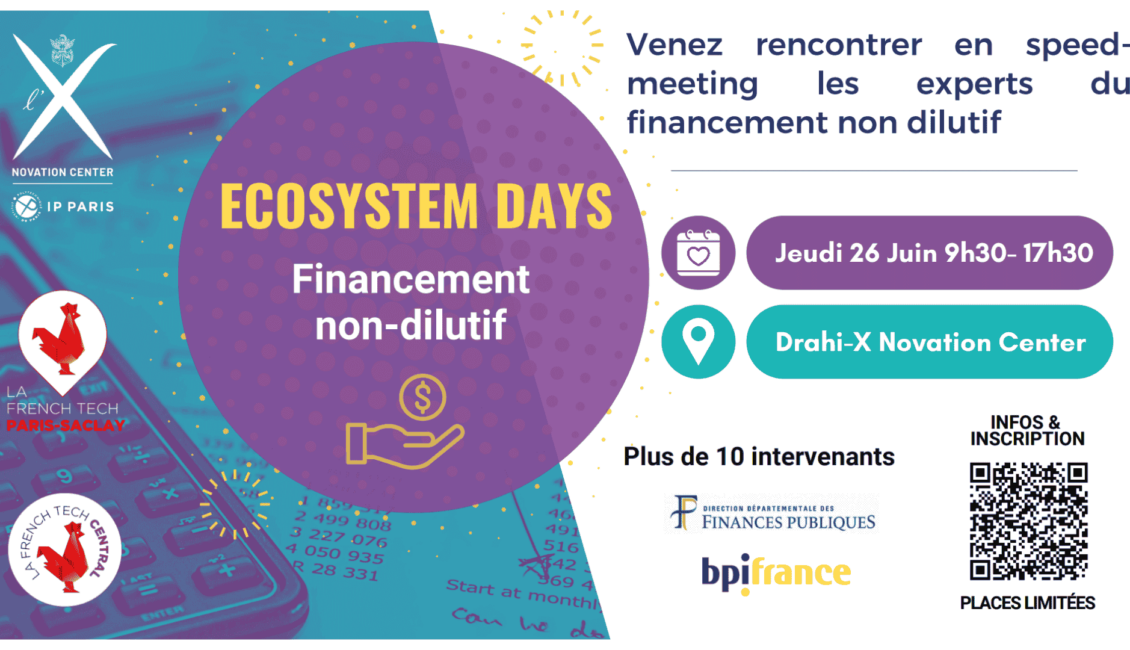 Vous êtes une start-up et vous avez des interrogations financières ? Du financement non dilutif aux subventions en passant par les JEI, notre équipe d’experts et les partenaires de l’incubateur X-UP de l’École polytechnique seront là pour répondre à toutes vos questions et vous guider !