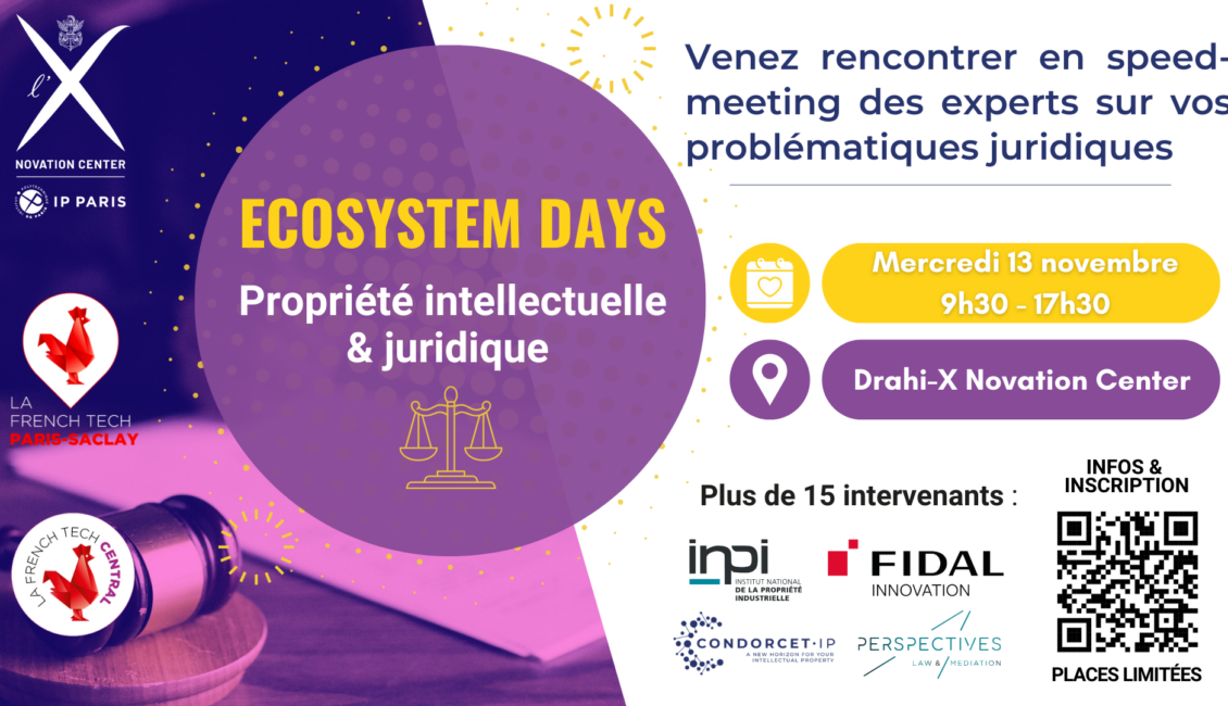 Nous sommes ravis de vous convier à l’Ecosystem Day sur le thème de la Propriété intellectuelle et Enjeux Juridiques, qui se tiendra à l’incubateur X-UP de l’École polytechnique à Palaiseau. Organisé au sein du Drahi-X Novation Center, cet événement est une opportunité pour tous les entrepreneurs et porteurs de projets désireux d’optimiser leur stratégie légale. Qu’allez-vous découvrir au cours de cette journée ?