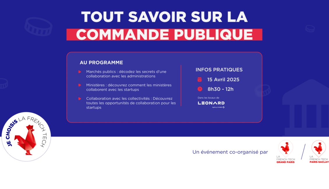 La commande publique représente une opportunité majeure pour les startups, mais les démarches peuvent sembler complexes. Cet événement, co-organisé par La French Tech Grand Paris et La French Tech Paris Saclay, vous permettra de décoder les appels d’offres, découvrir des alternatives d’achat et écouter des retours d’expérience d’administrations nationales et locales.