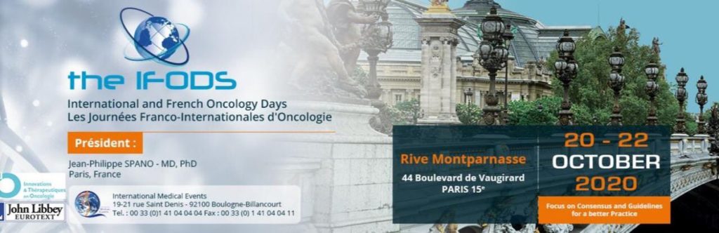 la Société Française du Cancer s’engage auprès des IFODS et ouvrira le congrès le mardi 20 octobre 2020 à 14h avec une session extraordinaire « le Futur de l’Oncologie » organisée avec le soutien de scientifiques, des jeunes oncologues, l’AERIO et pour laquelle l’AACR et l’EACR apportent leur soutien institutionnel.