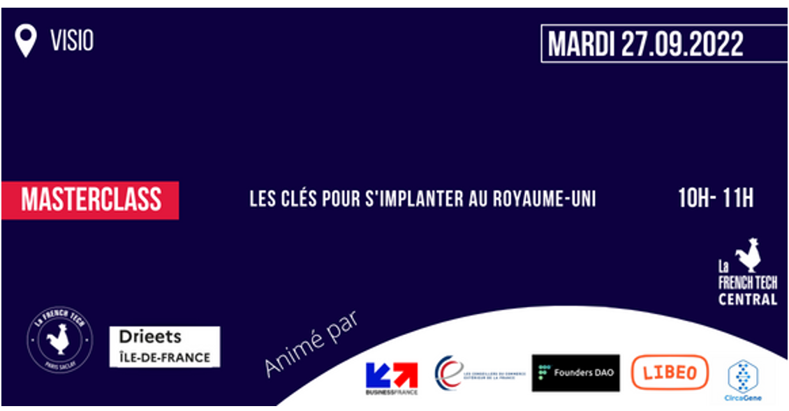 Les clés pour s’implanter au Royaume-Uni : Echangez avec des experts qui peuvent vous accompagner pour vous implanter, avec un fond d’investissement et avec deux startups, Libéo et Circagène.Les intervenants aborderons ces sujets :