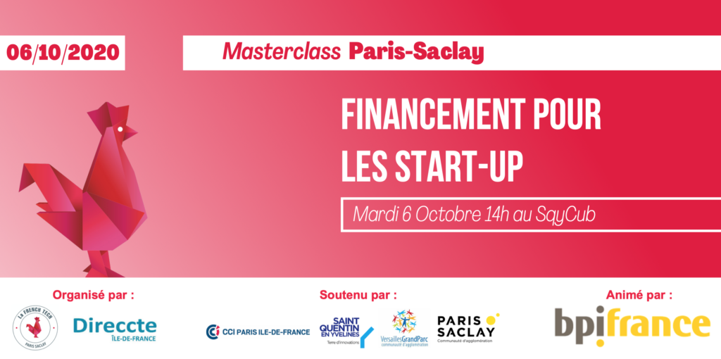 La French Tech Paris Saclay et Direccte île de france organisent des masterclass sur le sujet du financement pour les start-up. La première de ces deux master classes se déroulera le Mardi 6 Octobre à 14h au Sqycub en Yvelines (78).