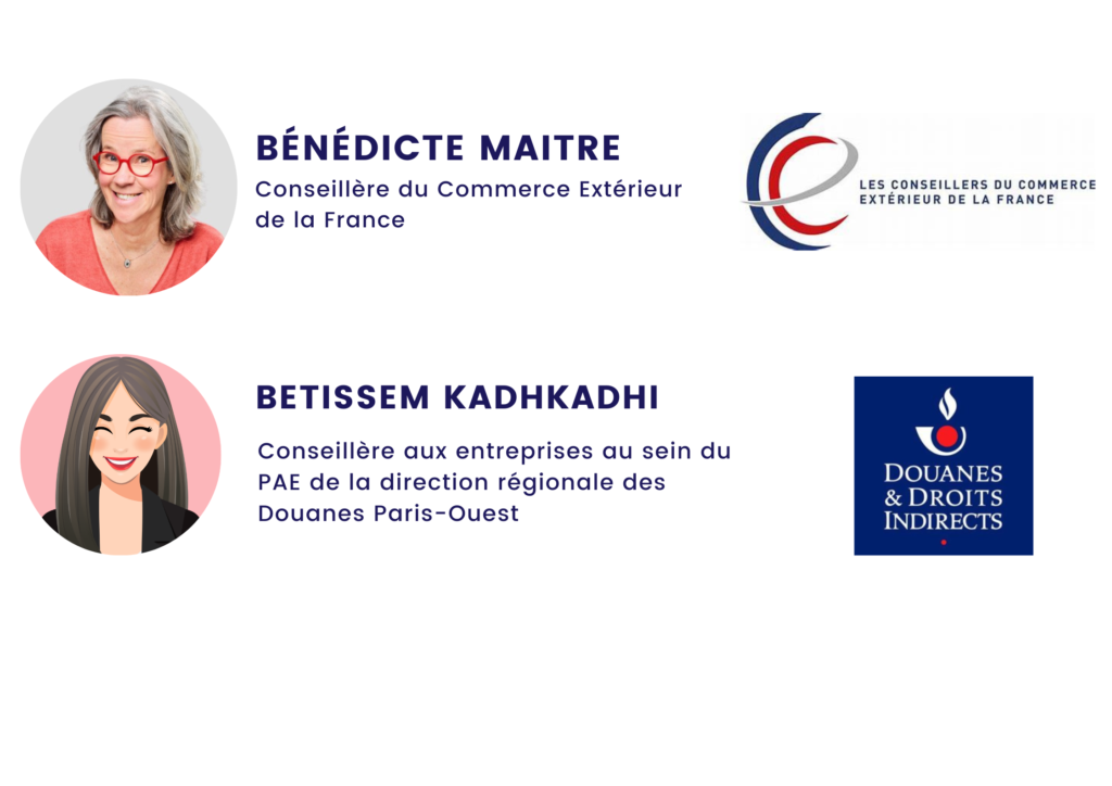 Rejoignez-nous pour une matinée exceptionnelle en compagnie de nos experts de renom ! Bénédicte Maitre, Présidente du comité Essonne des Conseillers du commerce extérieur de la France (CCE), et Battissem Kadhkadhi, Conseillère aux entreprises à la Direction régionale des Douanes Paris-Ouest, seront à vos côtés pour une expérience unique.
