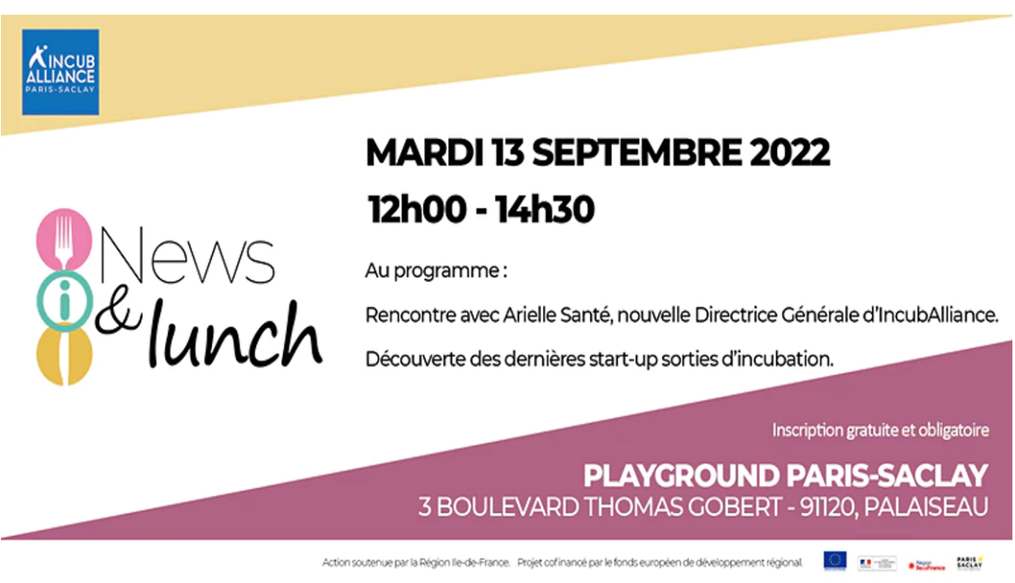 Nous vous donnons rendez-vous le mardi 13 septembre 2022 de 12h00 à 14h30 au Playground Paris-Saclay.