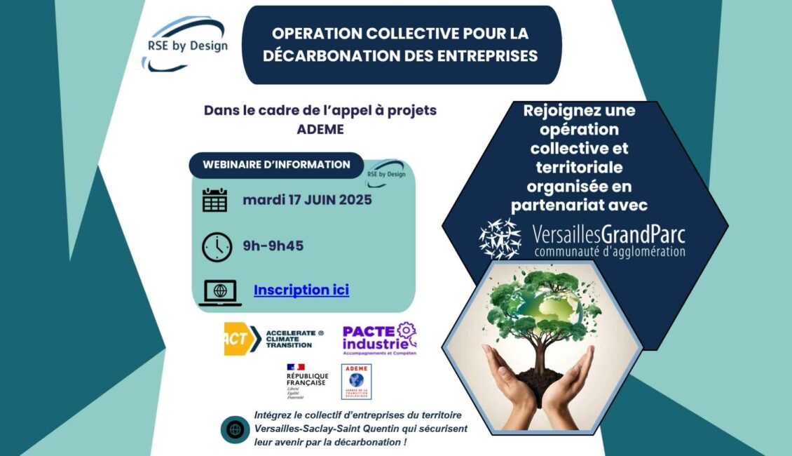 Versailles Grand Parc, en partenariat avec RSE BY DESIGN, vous invite à un webinaire pour découvrir la démarche ACT collectif de l’ADEME : la méthode, son coût et ses avantages.