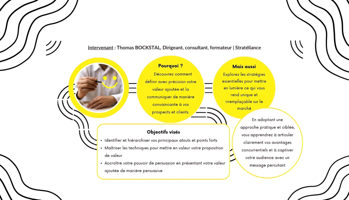 En adoptant une approche pratique et ciblée, vous apprendrez à articuler clairement vos avantages concurrentiel et à captiver votre audience avec un message percutant.