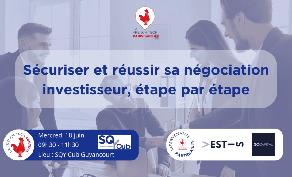 Obtenez toutes les clés pour réussir une négociation investisseurs Rendez vous au SQY Cub à Guyancourt le mercredi 18 juin à 09h30 Participez à notre masterclass aux côtés de nos experts partenaires Vestis, cabinet de droit des affaires indépendant qui offre...