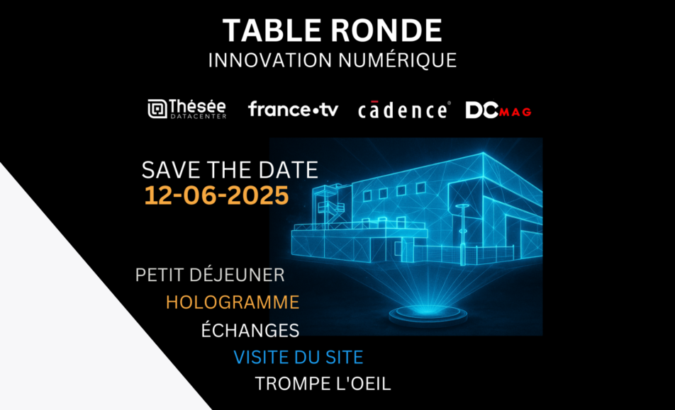 Notre partenaire Thésée datacenter a le plaisir de vous convier à un événement exclusif coorganisé avec France Télévisions, Cadence Wattdesign et Data Center Magazine, autour d’une thématique au cœur des enjeux technologiques actuels. Horaires : Jeudi 12 juin 8h30 –...