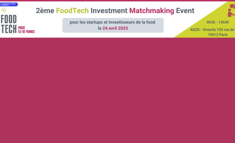 Dans le cadre du réseau FoodTech® Paris Ile de France, avec le support de la BPI, AgroParisTech, Shake’Up Factory et la CCI Paris Ile-de-France, nous avons le plaisir de vous inviter au 2ème FoodTech® Investment Matchmaking event pour les investisseurs et...