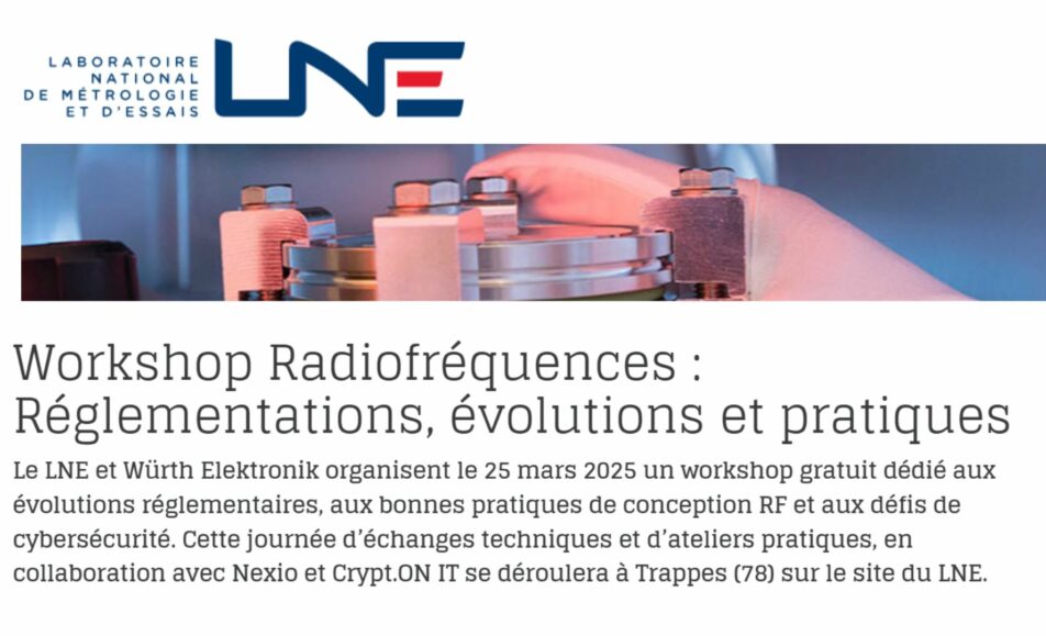 Le LNE et Würth Elektronik organisent le 25 mars 2025 un workshop gratuit dédié aux évolutions réglementaires, aux bonnes pratiques de conception RF et aux défis de cybersécurité. Cette journée d’échanges techniques et d’ateliers pratiques, en collaboration avec Nexio et...