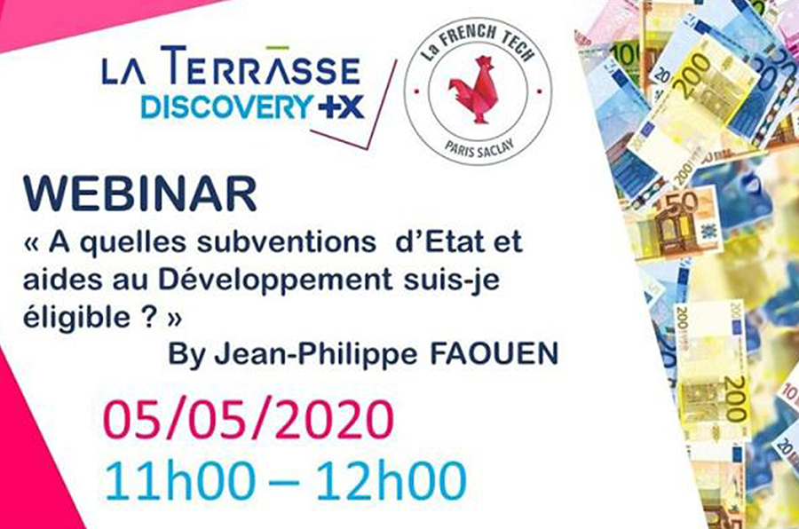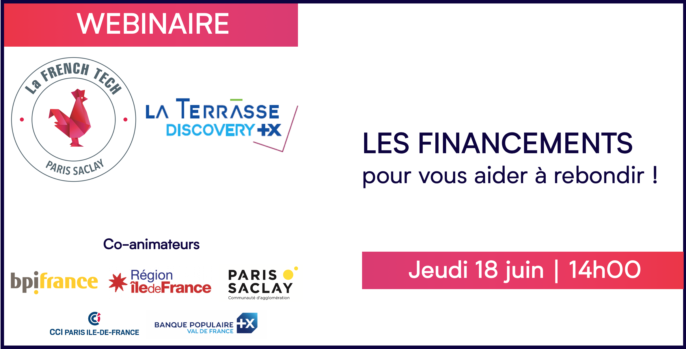 Dans la période de crise du Covid19, nous vous apportons les infos sur les financements de trésorerie et les soutiens financiers pro. Ce WEBINAR est co-organisé par La French Tech Paris Saclay et la Terrasse Discovery +x, un lieu de...