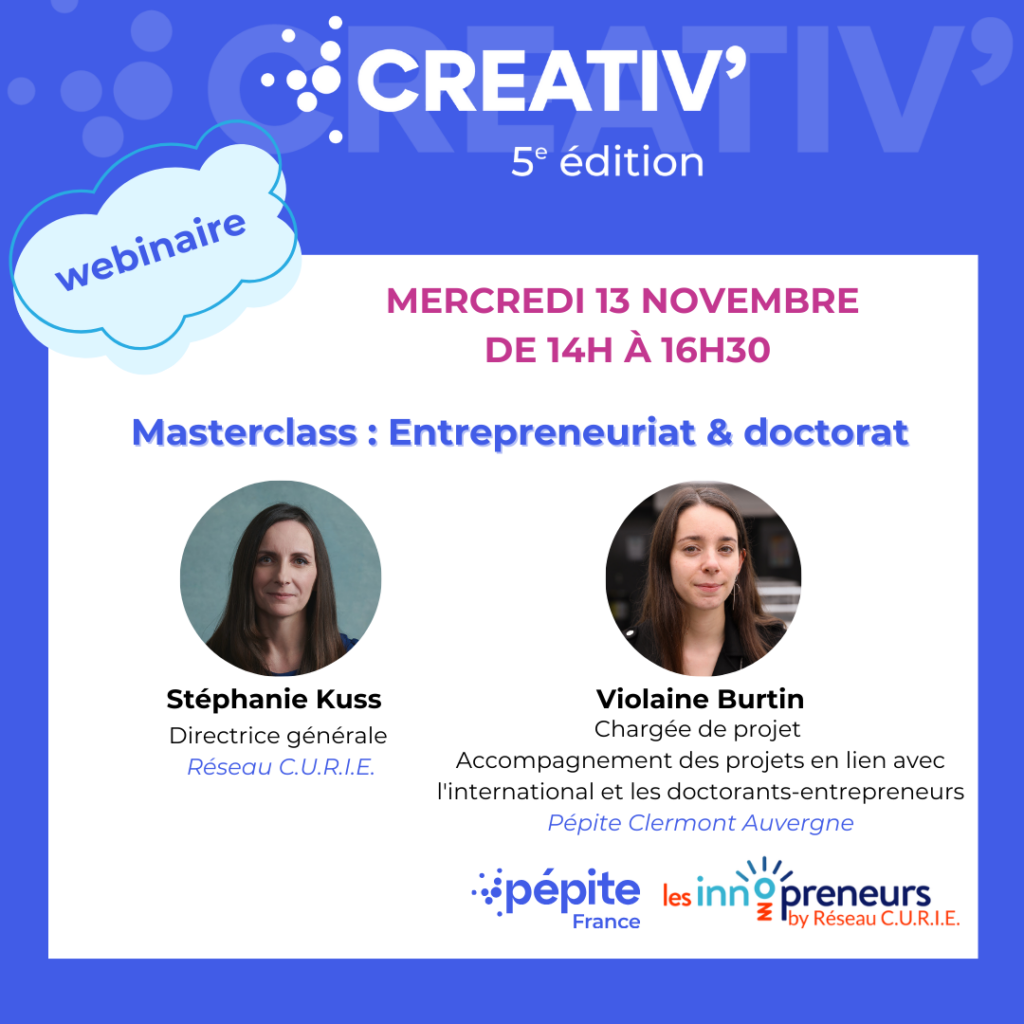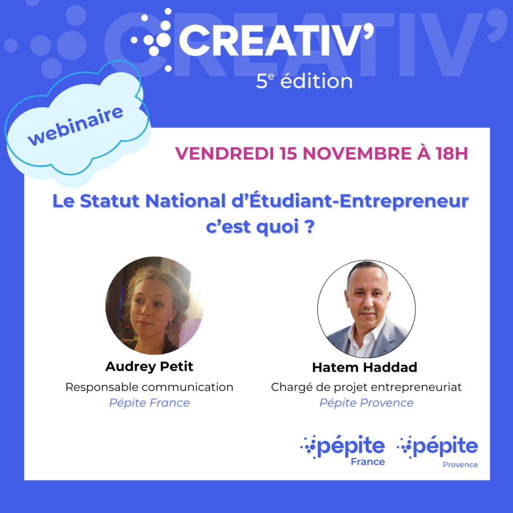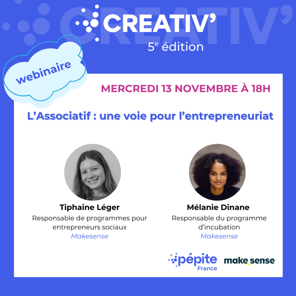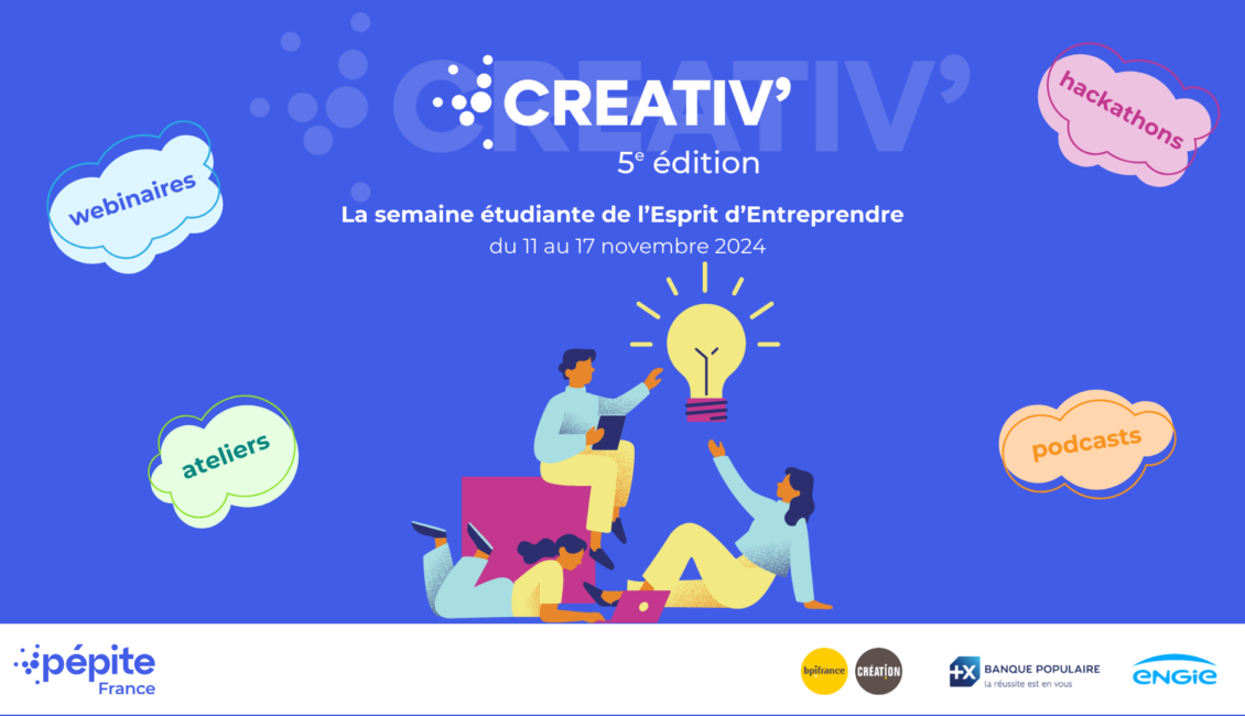 Née en 2020 sous l’impulsion du Ministère de l’Enseignement Supérieur et de la Recherche, CREATIV’ vise à sensibiliser les étudiants à l’entrepreneuriat à travers des échanges inspirants et des interventions d’experts. Cette année encore, cet événement phare sera coordonné par le réseau Pépite France et s’inscrira dans le cadre de la Semaine mondiale de l’entrepreneuriat.