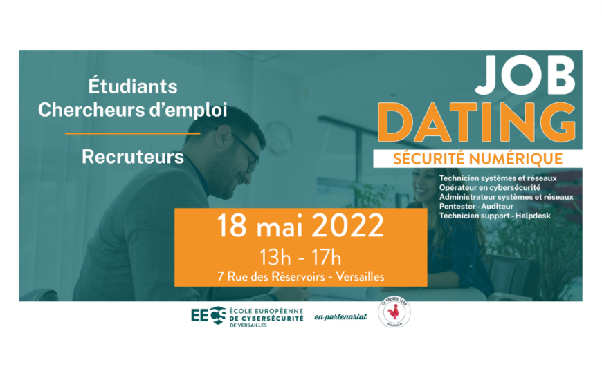 Venez participer à l’après-midi job dating sur le thème de la sécurité numérique ! Cet évènement est organisé par l’École Européenne de Cybersécurité (EECS) de Versailles en partenariat avec La French Tech Paris-Saclay. L’École Européenne de Cybersécurité (EECS) de Versailles...