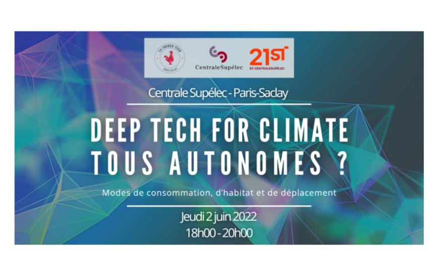 L’accélérateur 21st de CentraleSupélec et La French Tech Paris-Saclay (FTPS) co-organisent une série d’événements “Deep Tech For Climate”. « Deep Tech for Climate » regroupe un cycle de conférences, un hackathon et une exposition autour des problématiques de développement des technologies de...