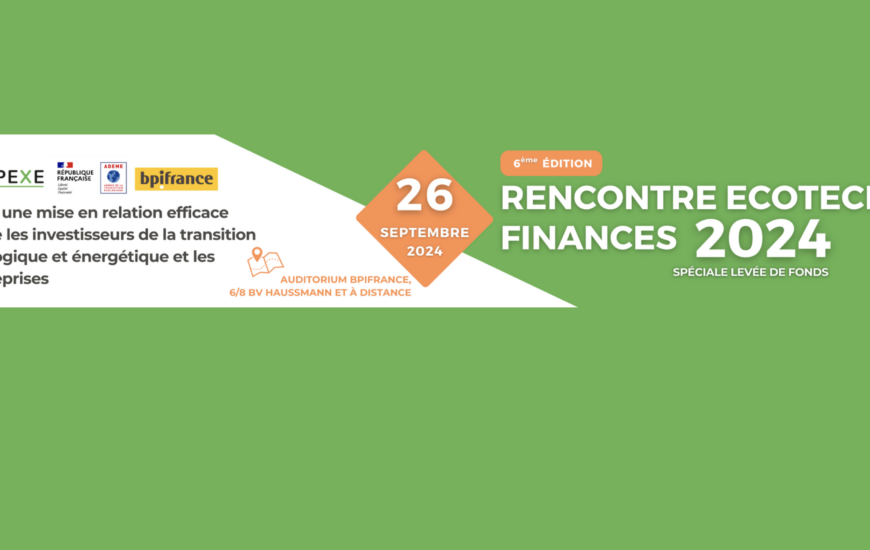 Participez à la 6ème Rencontre Ecotech Finances, pour une mise en relation EFFICACE entre les investisseurs de la transition écologique et énergétique et les entreprises Startup/TPE/PME/ETI de l’environnement et de l’énergie en recherche de financement ou en perspective de levée...
