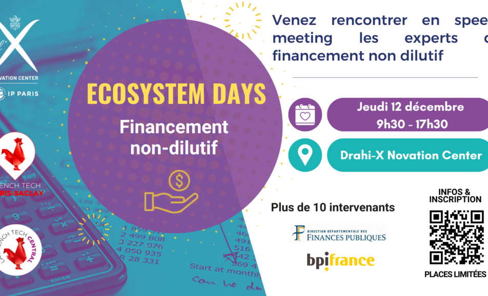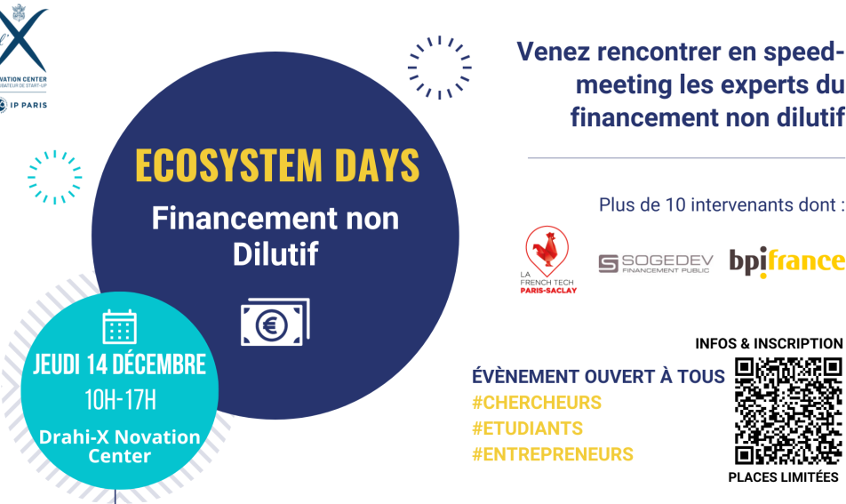 Vous êtes une start-up, un entrepreneur et avez des questions concernant votre financement ? Nous sommes ravis de vous convier à l’Ecosystem Day sur le thème du financement non dilutif, qui se tiendra à l’incubateur X-UP de l’École polytechnique à Palaiseau....