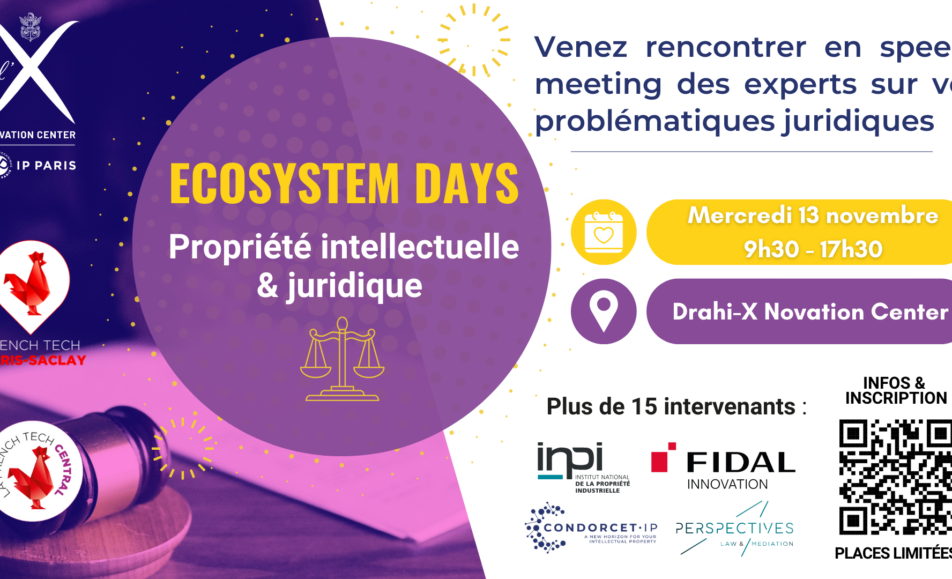 Vous êtes une start-up et avez des questions juridiques ? Contrats, statuts, pacte d’associés, propriété intellectuelle… Nous sommes ravis de vous convier à l’Ecosystem Day sur le thème de la Propriété intellectuelle et Enjeux Juridiques, qui se tiendra à l’incubateur X-UP de l’École polytechnique à Palaiseau....