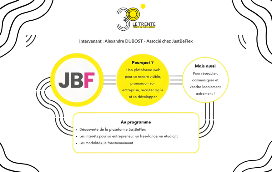 Pourquoi ? Une plateforme web pour se rendre visible, promouvoir son entreprise, recruter agile et se développer. Mais aussi Pour réseauter, communiquer et vendre localement autrement ! Au programme Découverte de la plateforme JustBeFlex Les intérêts pour un entrepreneur, un...