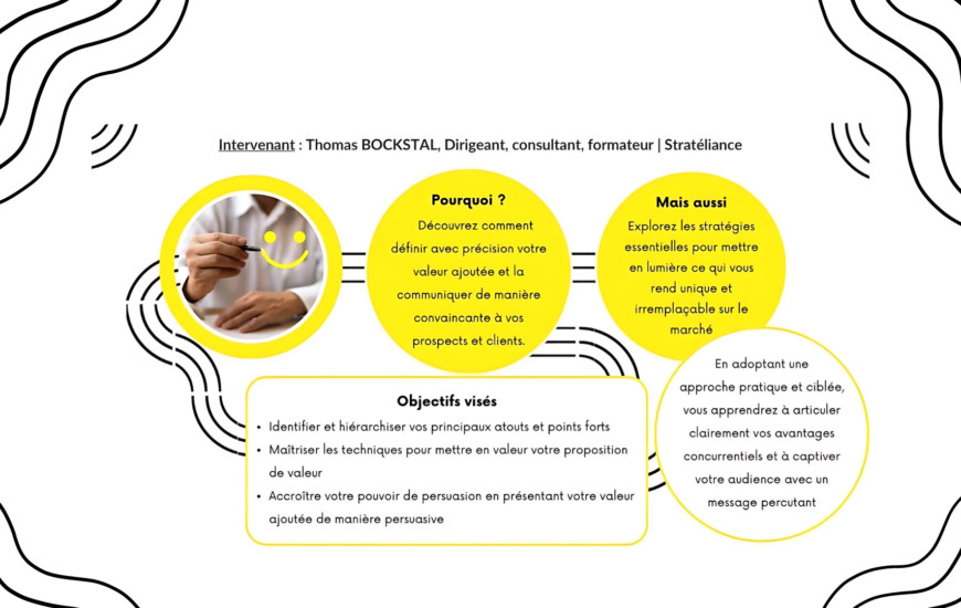 Pourquoi ? Découvrez comment définir avec précision votre valeur ajoutée et la communiquer de manière convaincante à vos prospects et clients. Mais aussi Explorez les stratégies essentielles pour mettre en lumière ce qui vous rend unique et irremplaçable sur le...