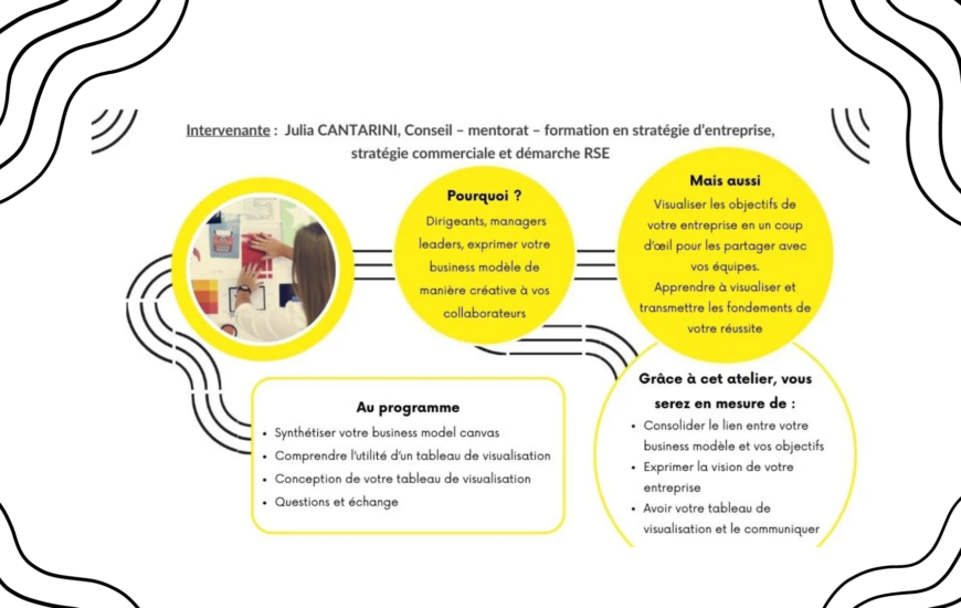 Pourquoi ? Dirigeants, managers, leaders, exprimer votre business modèle de manière créative à vos collaborateurs. Mais aussi Visualiser les objectifs de votre entreprise en un coup d’œil pour les partager avec vos équipes. Apprendre à visualiser et transmettre les fondements,...