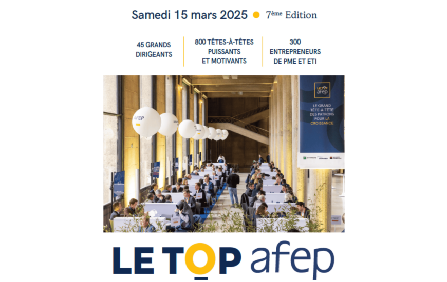 L’Afep est partenaire du programme « Je choisis la French Tech » et organise le 15 mars prochain son « Top Afep », un évènement qui prévoie des rencontres entrepreneuriales avec 50 grands patrons ouvert aux dirigeants start-up, PME et ETI.