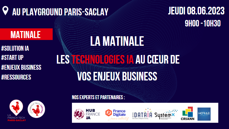 Pour cette édition de notre Matinale, nous mettrons en lumière MIA, start-up French Tech Paris-Saclay. Découvrez Amelle, son équipe qui vous présentera une démo de sa solution technologique basée sur l’IA. On vous attend nombreux pour ce temps de networking autour d’un petit déjeuner. Invité : Où...