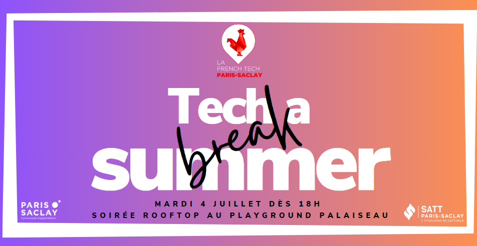 La French Tech Paris-Saclay vous convie à Tech a Summer Break sur le rooftop du Playground (rue Liliane Marceau – 91120 Palaiseau)! Événement gratuit* pour les adhérents de La French Tech Paris-Saclay Cet événement sera l’occasion de rencontrer les adhérents de La French Tech Paris-Saclay...