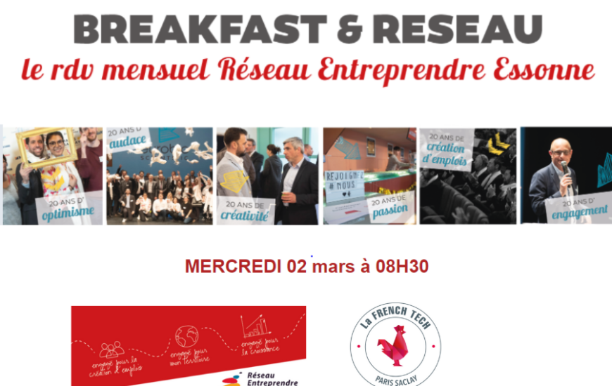 Le rdv mensuel Réseau Entreprendre Essone organisé avec La French Tech Paris Saclay aura lieu mardi 2 mars à 8h30. Au Programme Témoignages DUO – Accompagnatrice/lauréat Stéphanie TONDINI & Eric D’HAENE