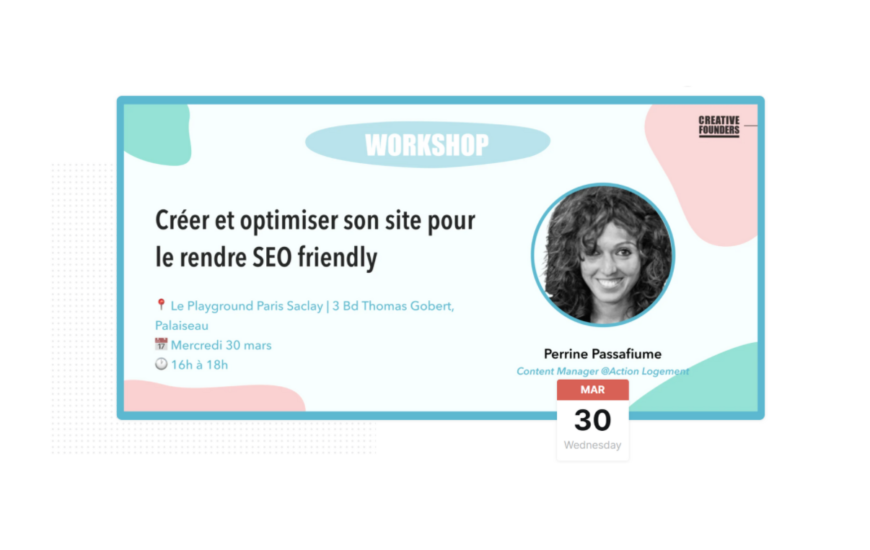 Au programme : “Créer et optimiser son site pour le rendre SEO friendly” présenté par Perrine Passafiume | Content Manager et experte en optimisation SEO En une petite heure, Perrine nous présentera ses outils favoris, ses tips et finira avec...