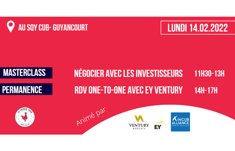 Masterclass animée par EY Ventury et Incuballiance le lundi 14 février 2022 (11h30 à 12h) Rendez-vous one-to-one avec EY Ventury (14h-17h)