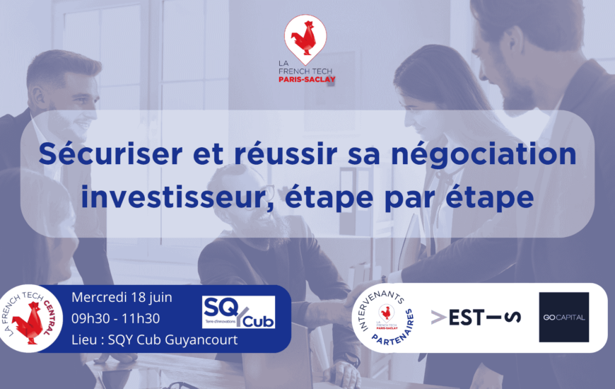 Obtenez toutes les clés pour réussir une négociation investisseurs Rendez vous au SQY Cub à Guyancourt le mercredi 18 juin à 09h30 Participez à notre masterclass aux côtés de nos experts partenaires Vestis, cabinet de droit des affaires indépendant qui offre...