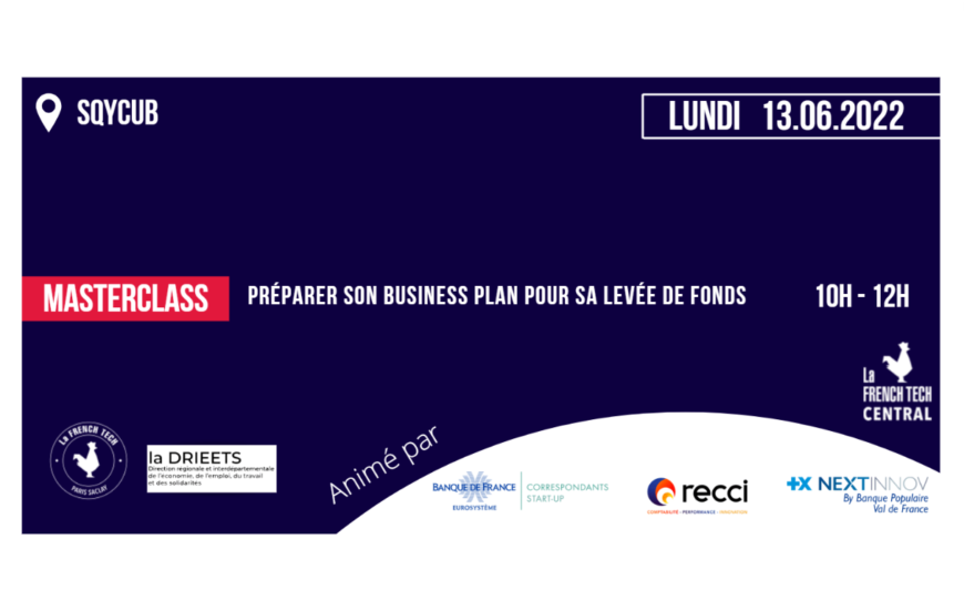 La French Tech Paris-Saclay & La Drieets vous donnent la possibilité d’assister gratuitement à des Masterclass et des rdv one to one Masterclass animée par Nextinnov, Banque de France et Recci Quand ? Lundi 13 juin entre 10h et 12h Où...