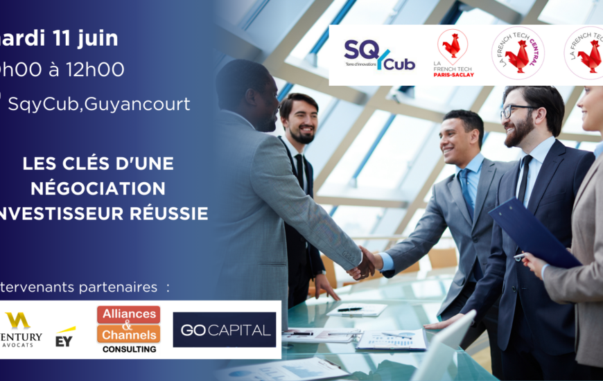 Obtenez toutes les clés pour réussir une négociation investisseurs Rendez vous à SqyCub à Guyancourt le mardi 11 juin à 10h00 Participez à notre masterclass au côtés de nos experts partenaires EY Ventury Avocat, cabinet spécialisé en droit des affaires et...