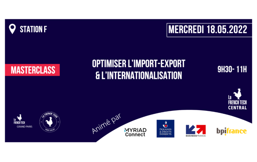 Tout savoir sur l’import-export et l’internationalisation avec les experts des Douanes, Business France et Bpifrance À propos de cet évènement Vous souhaitez ouvrir un pays? Vous vous interrogez sur les défis de l’internationalisation? La French Tech Grand Paris et la...