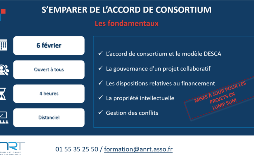 En 2024, le modèle d’accord de consortium (DESCA) a évolué pour tenir compte des actualités du Programme Horizon Europe avec le financement en Lump Sum. L’ANRT, membre du Core Group #DESCA depuis sa création, détaille le contenu précis de ce...