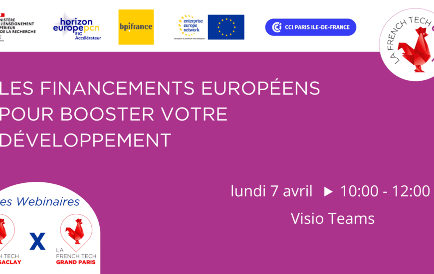Un Webinaire exclusif 100% Financement Europe! Vous cherchez des opportunités de financement? Le lundi 7 avril rendez-vous à 10h00 en ligne pour découvrir l’ensemble des opportunités de financement en Europe (Horizon Europe) et les accompagnements associés. Focus sur les acteurs partenaires...