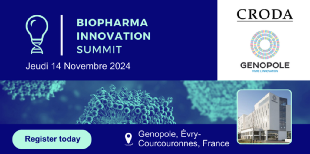 Genopole and Croda Pharma invite you to the “Biopharma Innovation Summit” on November 14 at Genopole. On the program: roundtables and presentations on vaccines, gene editing, biomanufacturing, sustainability in the pharmaceutical industry…