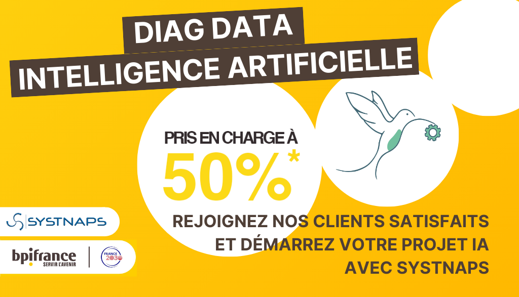 Systnaps, expert agréé BPI France, vous propose un Diag Data IA financé à 50% par BPI France, destiné aux PME et ETI françaises de moins de 2000 salariés réalisant un chiffre d’affaires supérieur ou égal à 1 million d’euros sur un bilan de 12 mois. Une opportunité à saisir !